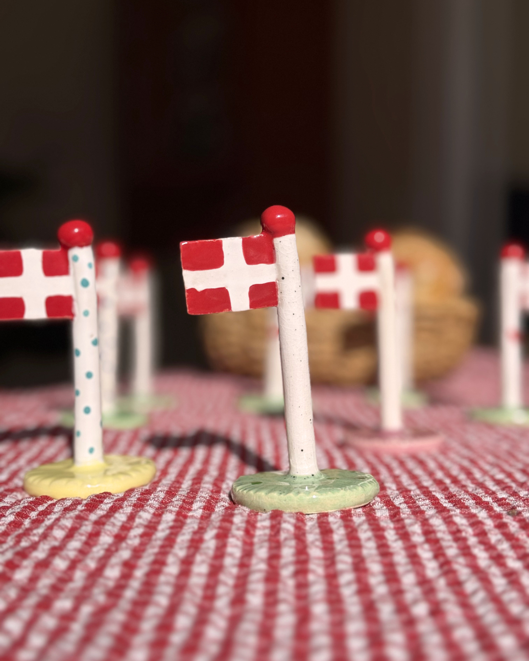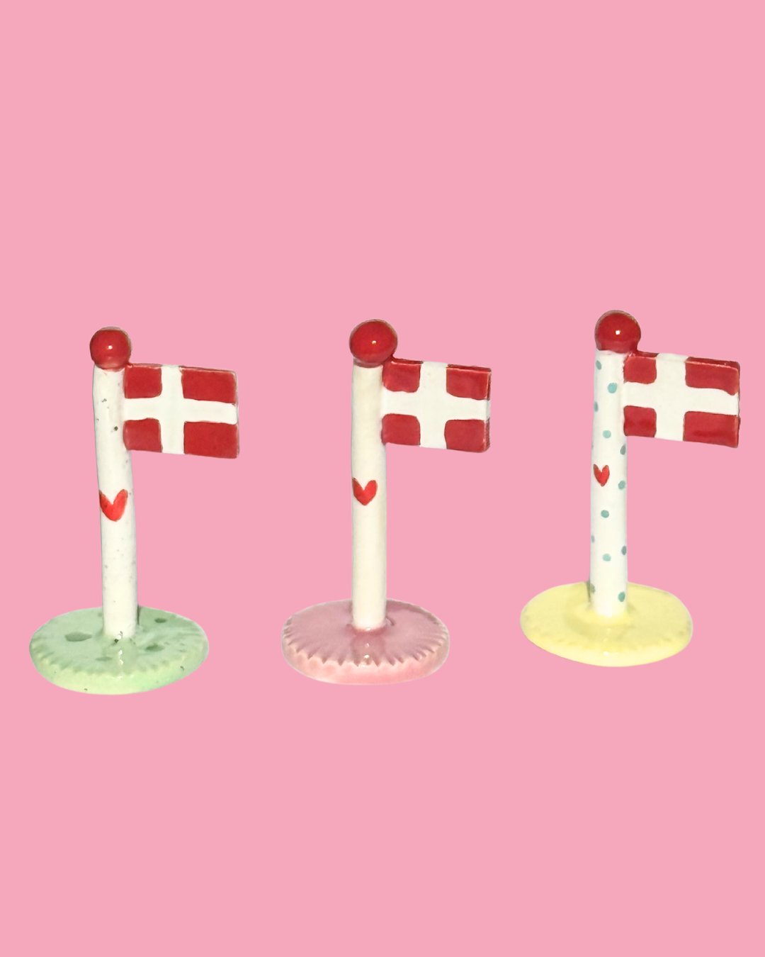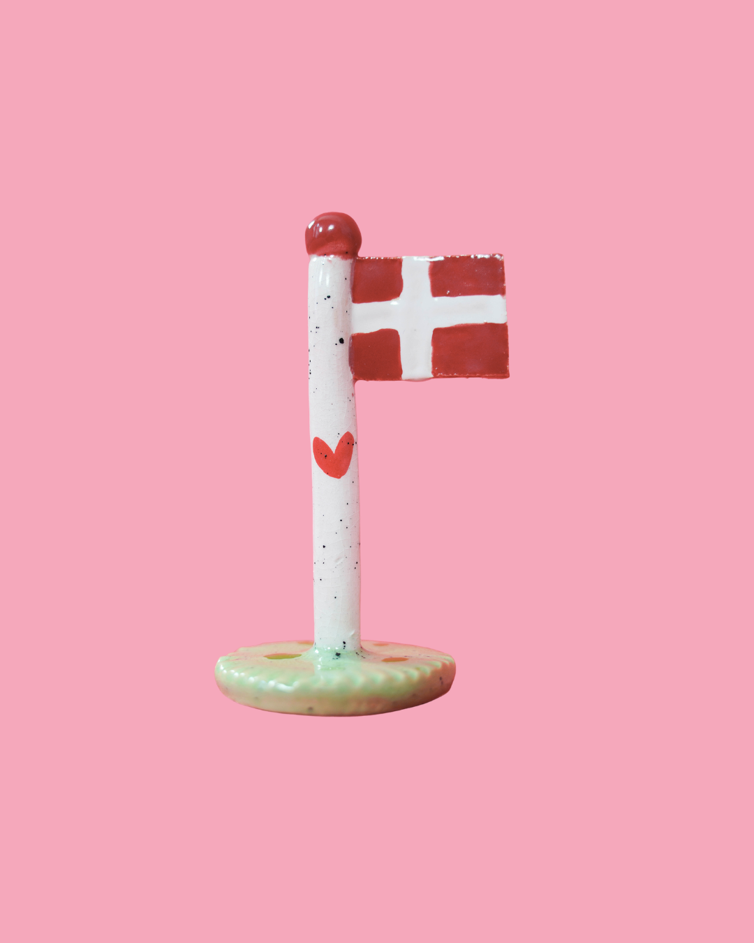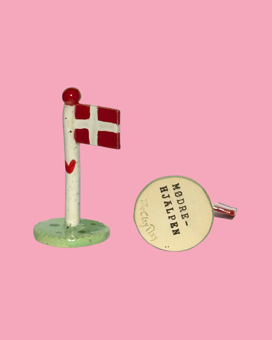 Køb et limited edition keramikflag af Annemette Klit fra The Clay Play og støt Mødrehjælpens Fødselsdagshjælp. Flagene er håndlavede, glaserede og unikt designet med grøn-hvide nuancer og små krakeleringer.