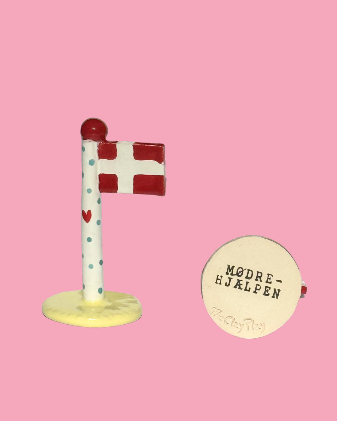 Køb et limited edition keramikflag af Annemette Klit fra The Clay Play og støt Mødrehjælpens Fødselsdagshjælp. Flagene er håndlavede, glaserede og unikt designet med gul-hvide nuancer.
